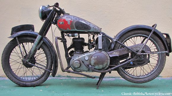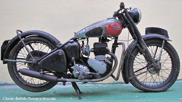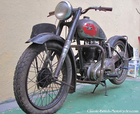 Air-cooled side-valve single 249cc / 15.2ci 12hp 3-speed, right-foot shifting Girder, dampened Rigid 7″ SLS drum / 7″ SLS drum 250 lbs / 113 kg |