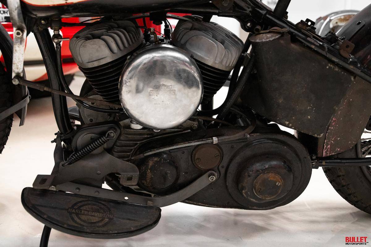 This particular motorcycle is a 1950 WR Harley-Davidson with fewer than five miles on it. It’s certainly a collector item, but it does run and is designed as a competition only model. The engine and transmission were recently rebuilt, and there’s documentation of the rebuild provided by the seller.