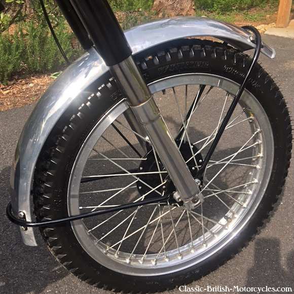 Air-cooled OHV single 348cc / 21.2ci 2.83″ X 3.37″ / 72mm X 85.5mm 8.8:1 Amal Monobloc 389/208 23hp @ 6000rpm 21 lb-ft @ 4500 rpm 55.4″ / 1407mm 86.0″ / 2184mm 27.0″ / 686mm 29.8″ / 756mm 414 lbs / 188 kg |