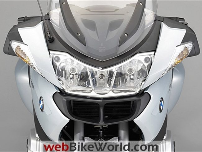 As in the past, the dominating headlight with its sharp contours gives the front end of the R 1200 RT a particularly stylish and truly unique appearance, setting it clearly aside from all other models. Following the free-form surface principle, the headlight unit is made up of two H7 headlights arranged to the right and left for a double low beam and a central light for the high beam, in each case with maximum light intensity.