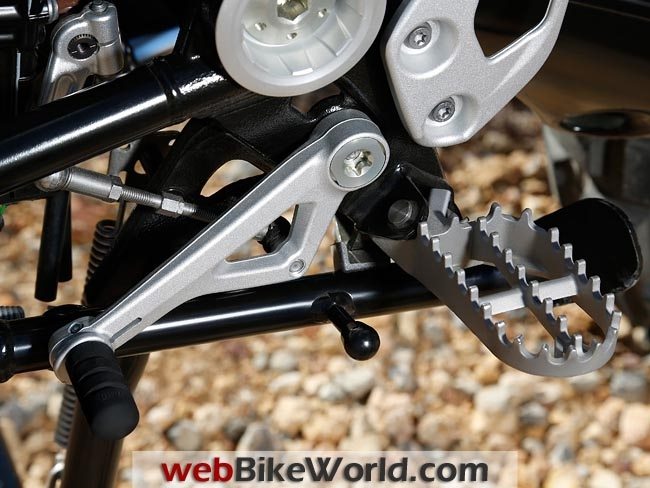 Wider enduro footrests than on the R 1200 GS together with adjustable foot-operated levers for the footbrake and gearshift make allowance for the occasional change in requirements on the new Adventure, particularly when riding off road.