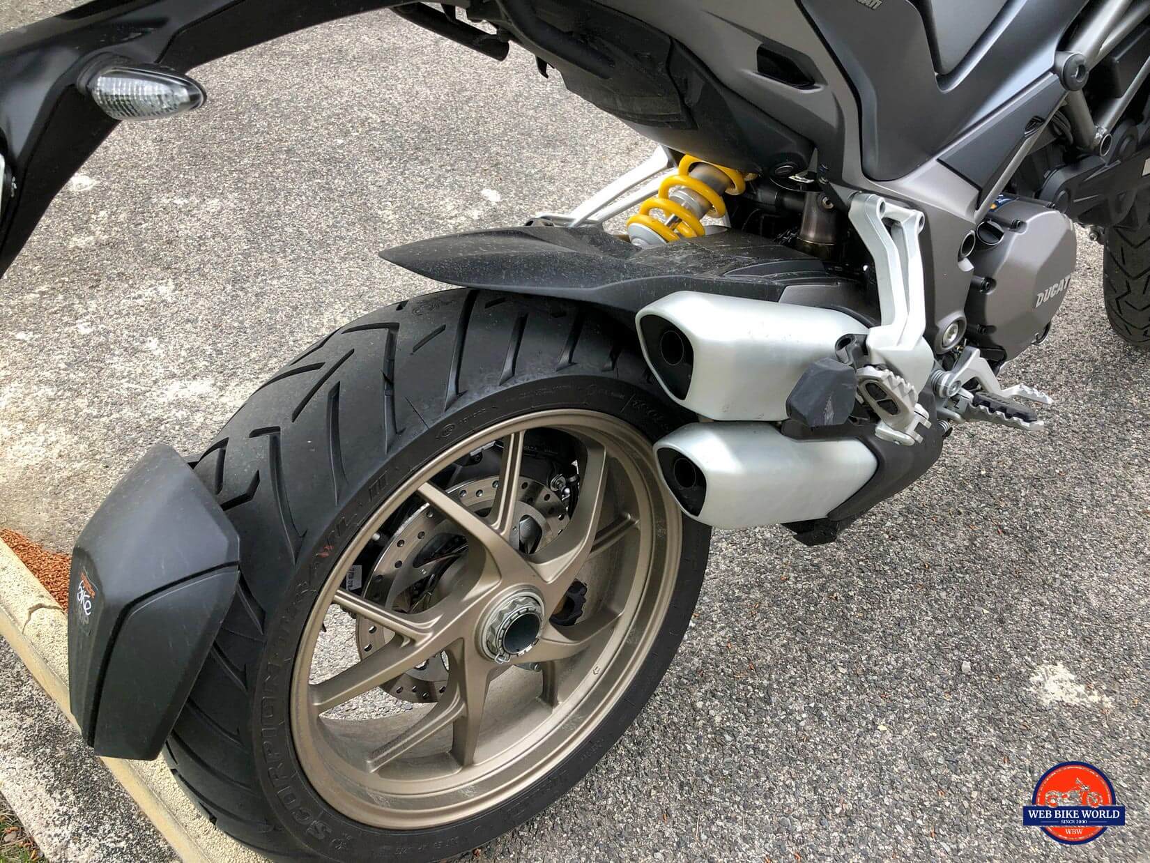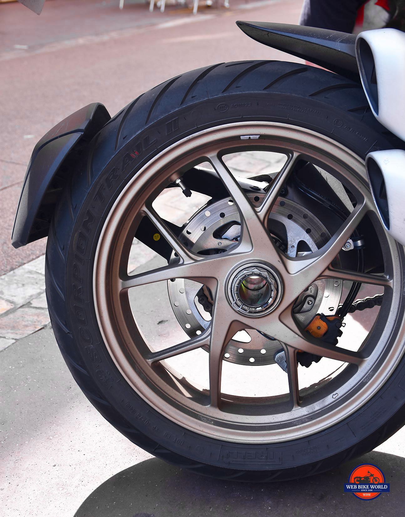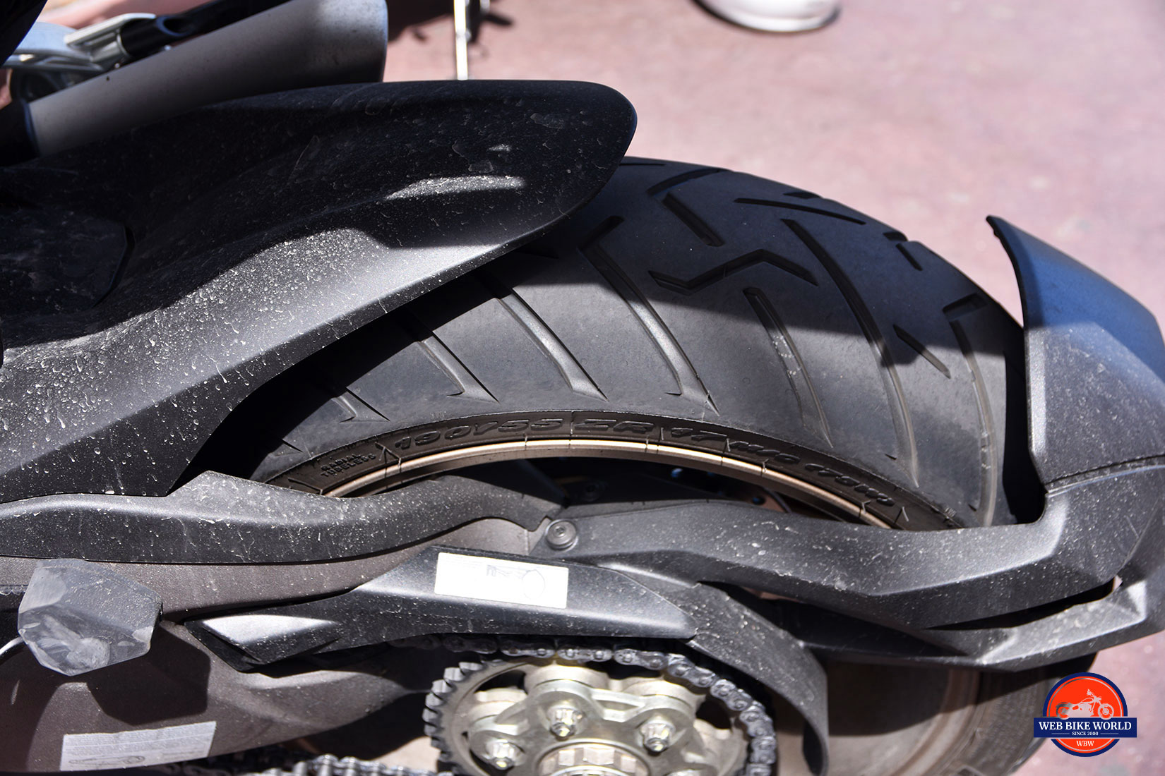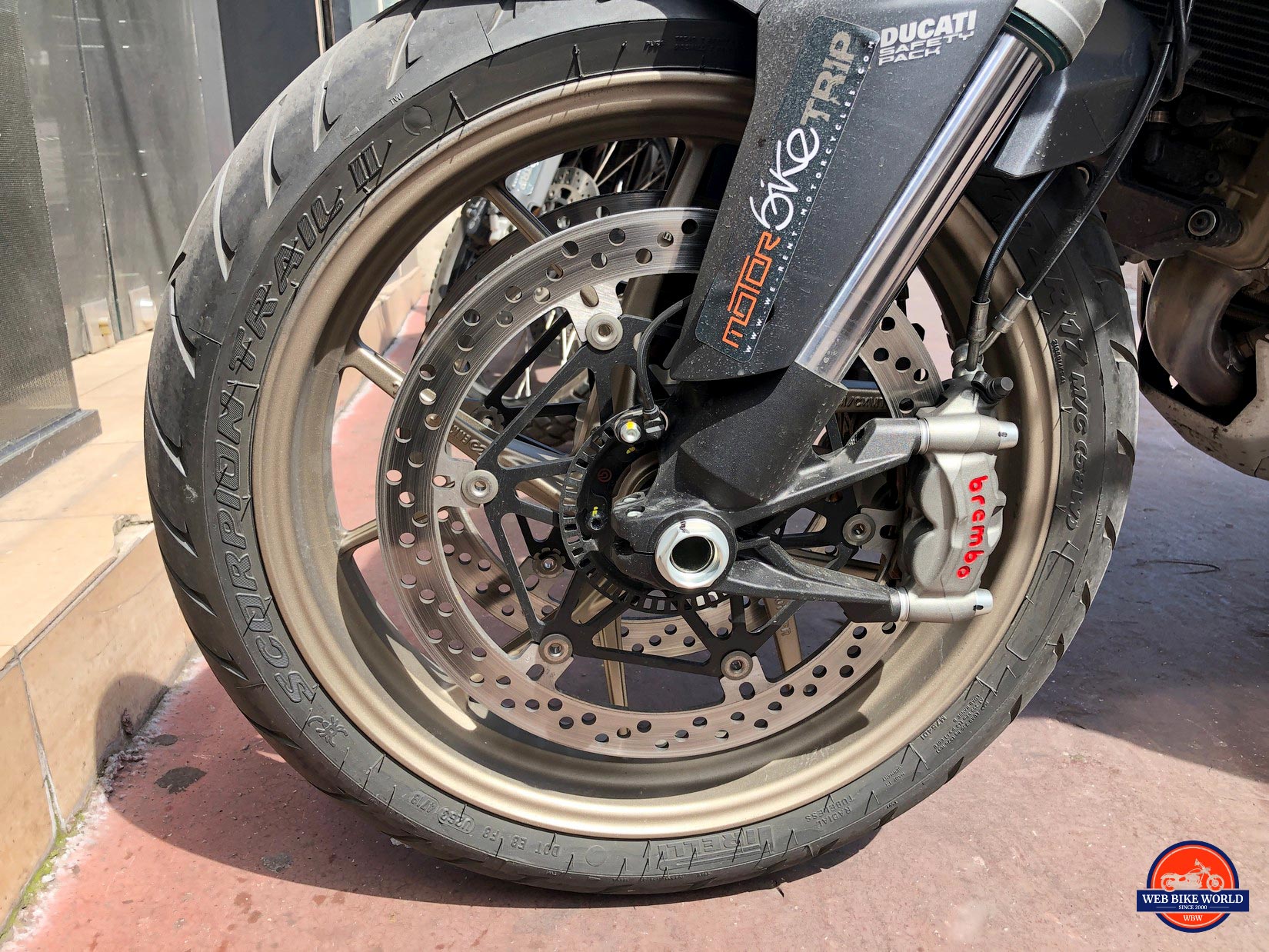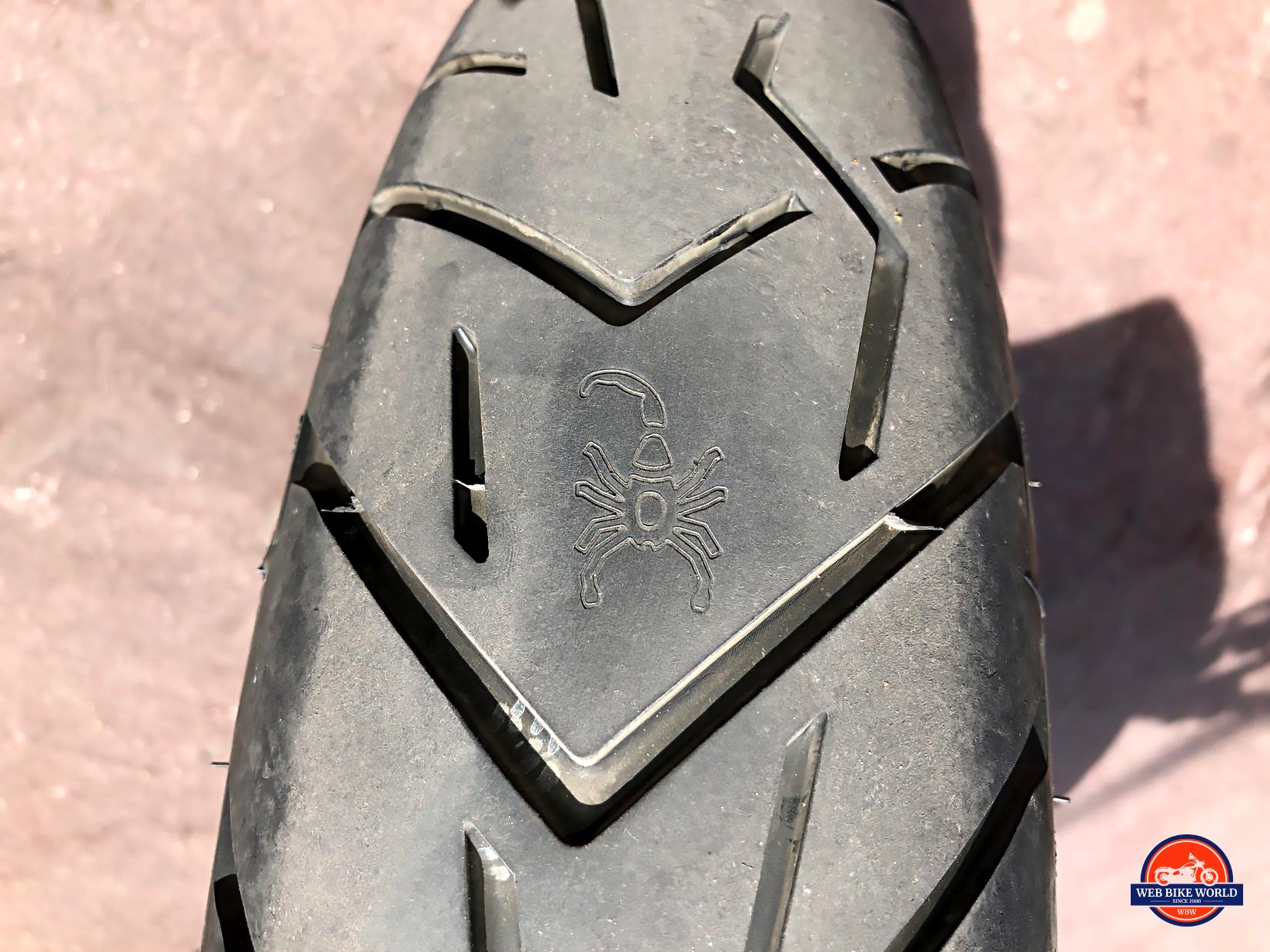 The Scorpion Trail II tires were easy to like on asphalt and on the gravel I briefly rode on. I didn’t really go off-road with it other than on some hard packed dirt where they were good too. The scorpion drawing on them is a nice touch.