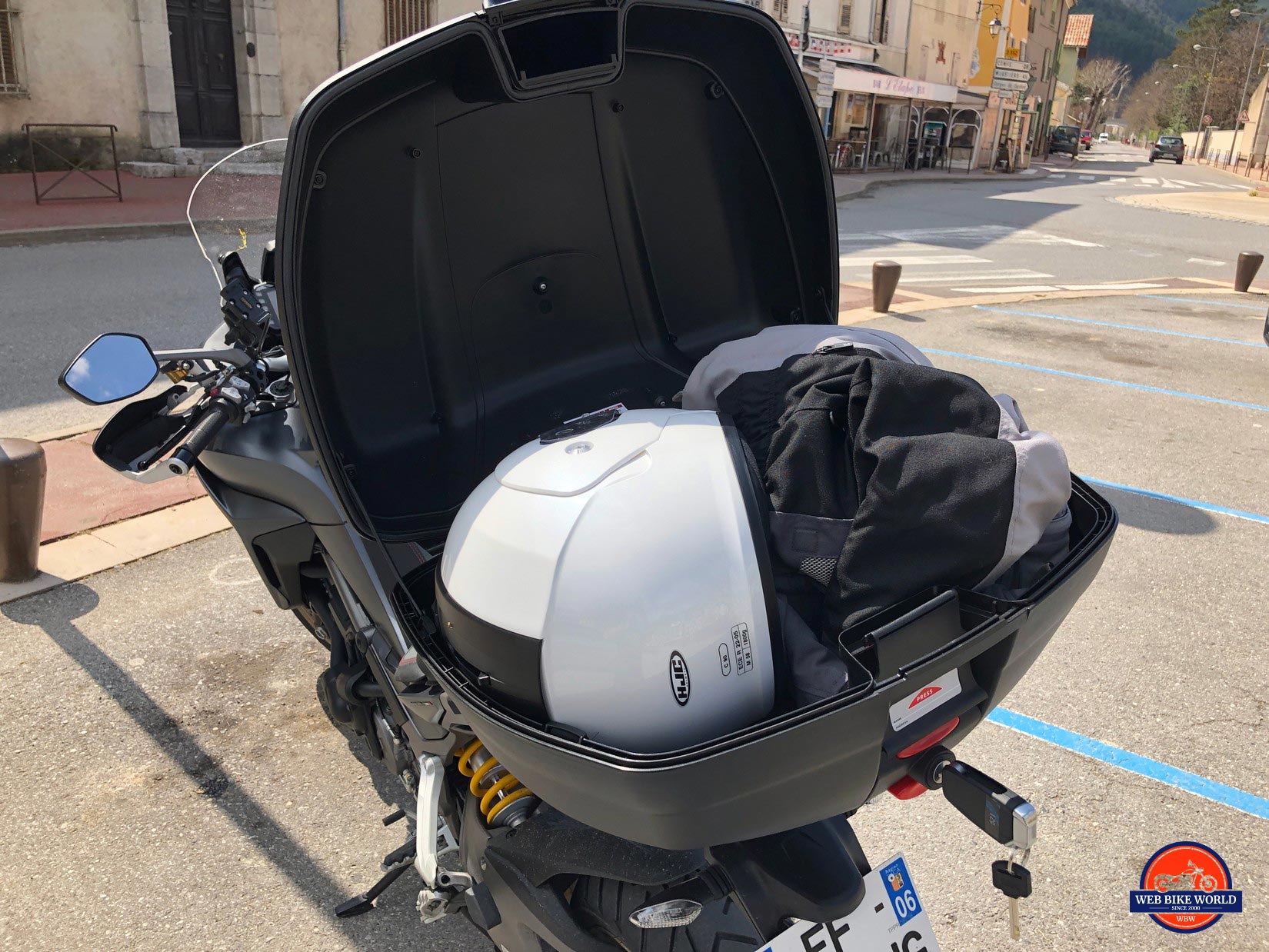 This excellent motorcycle was provided to me free of charge by a rental company in Nice, France called Motorbike Rental. Thanks to them I was able to try out their service and fleet of bikes, both of which I highly recommend. See their website for full details at Motorbike Trip.