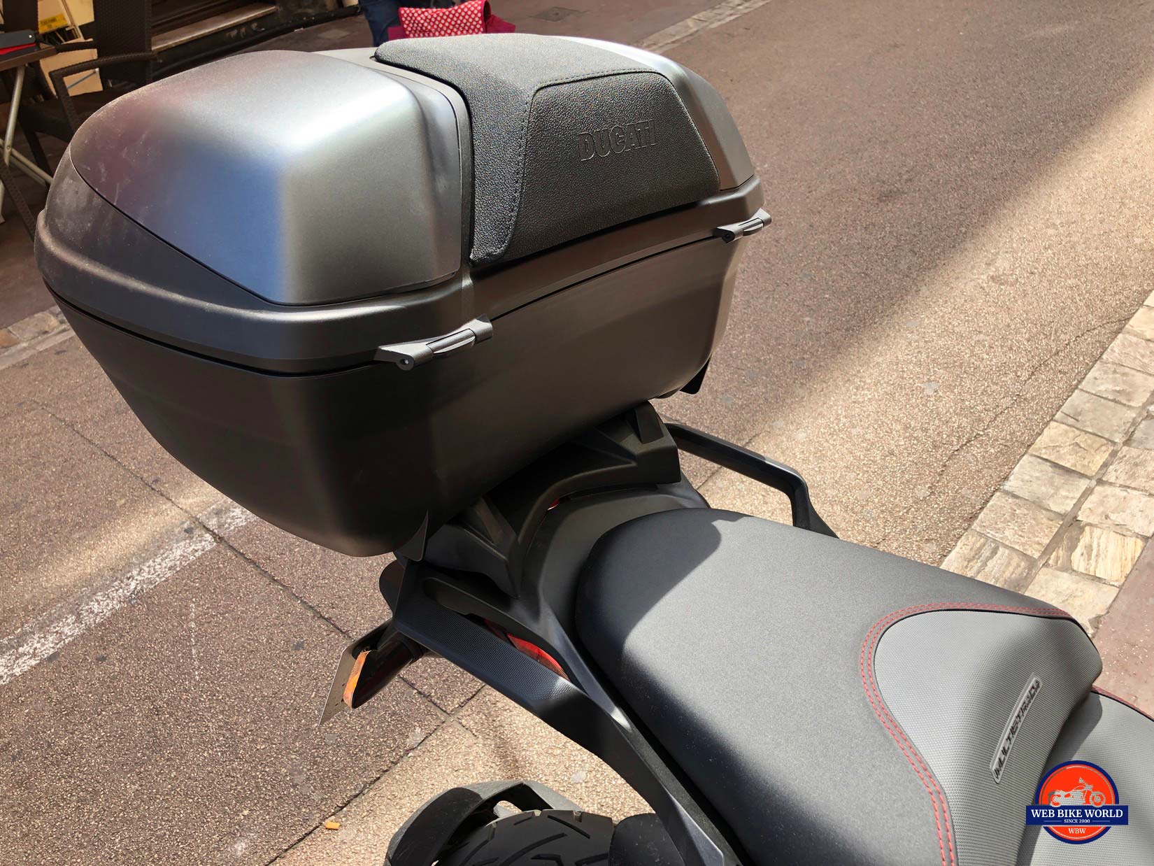 Speaking of the optional Ducati factory passenger backrest/tour pack, it’s excellent!