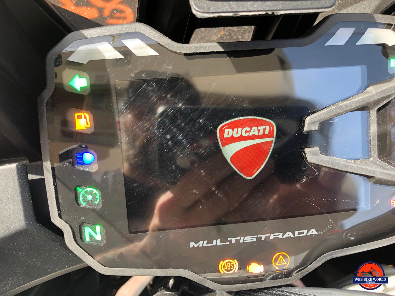 This is a big beef of mine with gauges and unfortunately, the Multistrada TFT scratches easily. I brushed my gloved hand over it a few times to get the dust off it and left behind marks you can see in these photos. Surely Ducati and other manufacturers know about this but fail all too often on bikes to correct or prevent it.