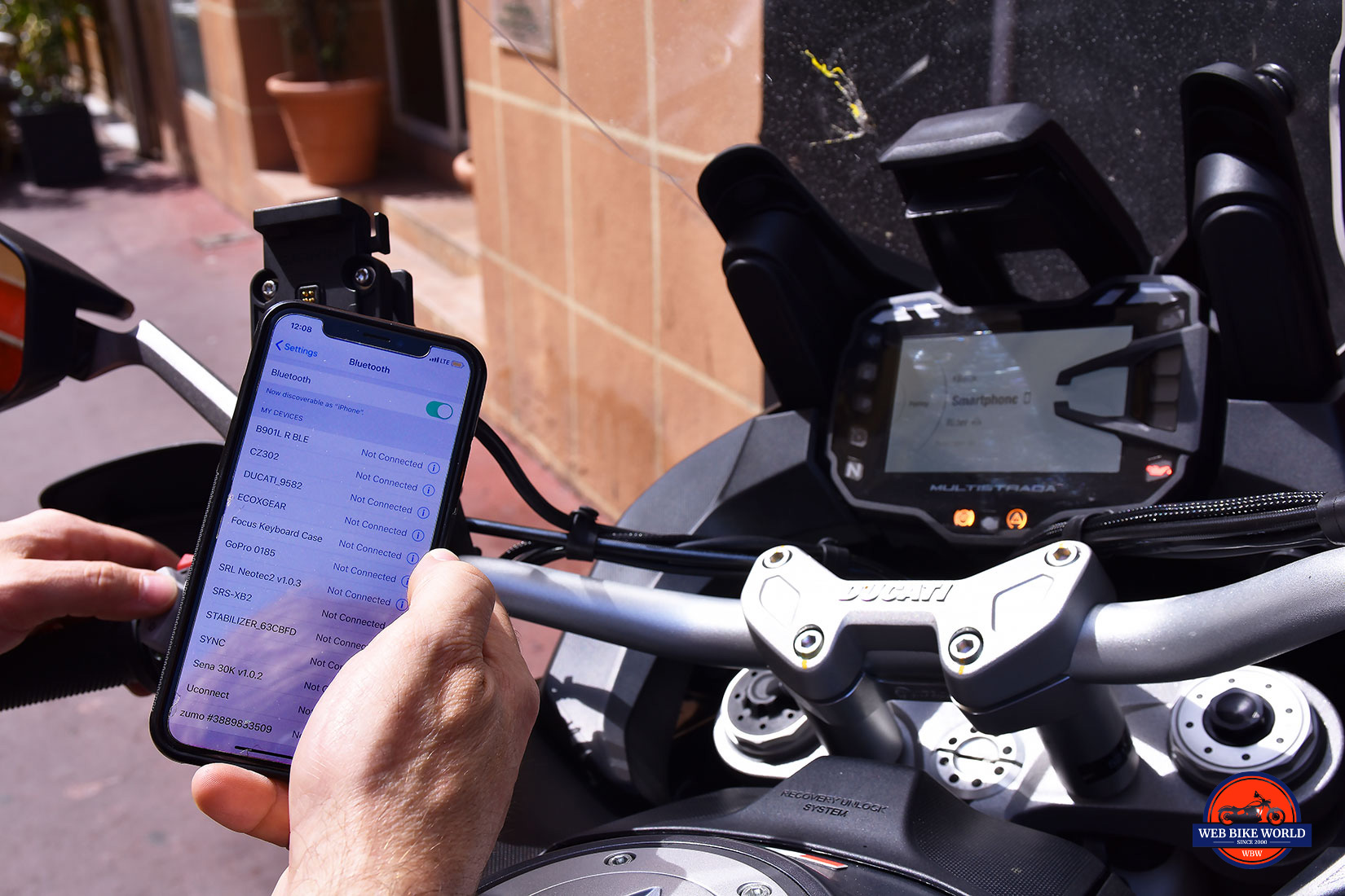 Cycling through the menus using the left handlebar buttons and syncing my iPhone X to it was 99% child’s play. Unfortunately, I didn’t have a Sena or other BlueTooth headset to pair with it, but the system on this bike is very intuitive even without reading the manual when it comes to pairing.