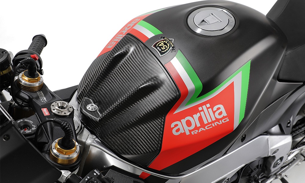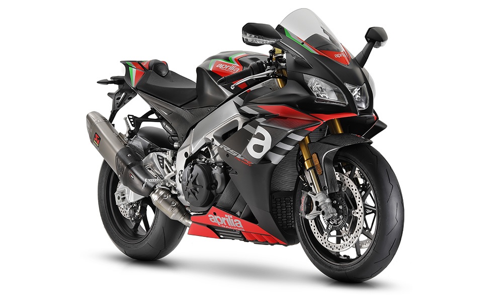 The classic Aprilia longitudinal 65° 4-stroke V4 engine produces an exceptional 217 horsepower and 90 lb-ft of peak torque. While the engine hasn’t seen much in the way of an upgrade, Aprilia has reduced the overall weight of the motorcycle by adding a plethora of carbon fiber parts, improving the power-to-weight ratio. Other top shelf parts include a titanium slip-on exhaust from Akrapovic, Brembo brakes, and forged aluminum wheels.