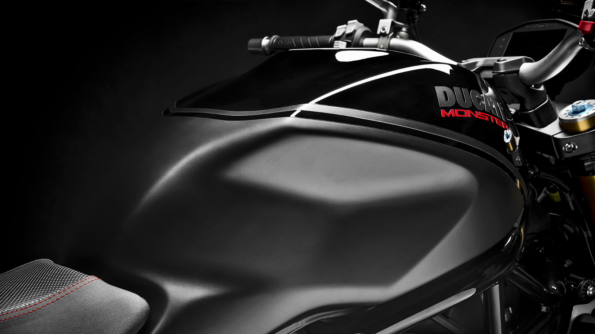 The Monster 1200 has always been a symbol in the world of sporty naked bikes thanks to the details that make it unmistakable. In the S version, the new Black on Black color with matt and glossy black elements, enhances its sporty lines and character.