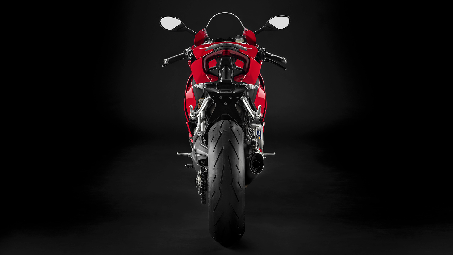 The tailpiece incorporates the full-LED tail light, also wing-shaped: while a one-piece assembly, the light has two distinct parts as per Ducati sports bike tradition. The Panigale V2 combines a traditional Ducati Red livery with black 5-spoke wheels of a Panigale V4-inspired design.