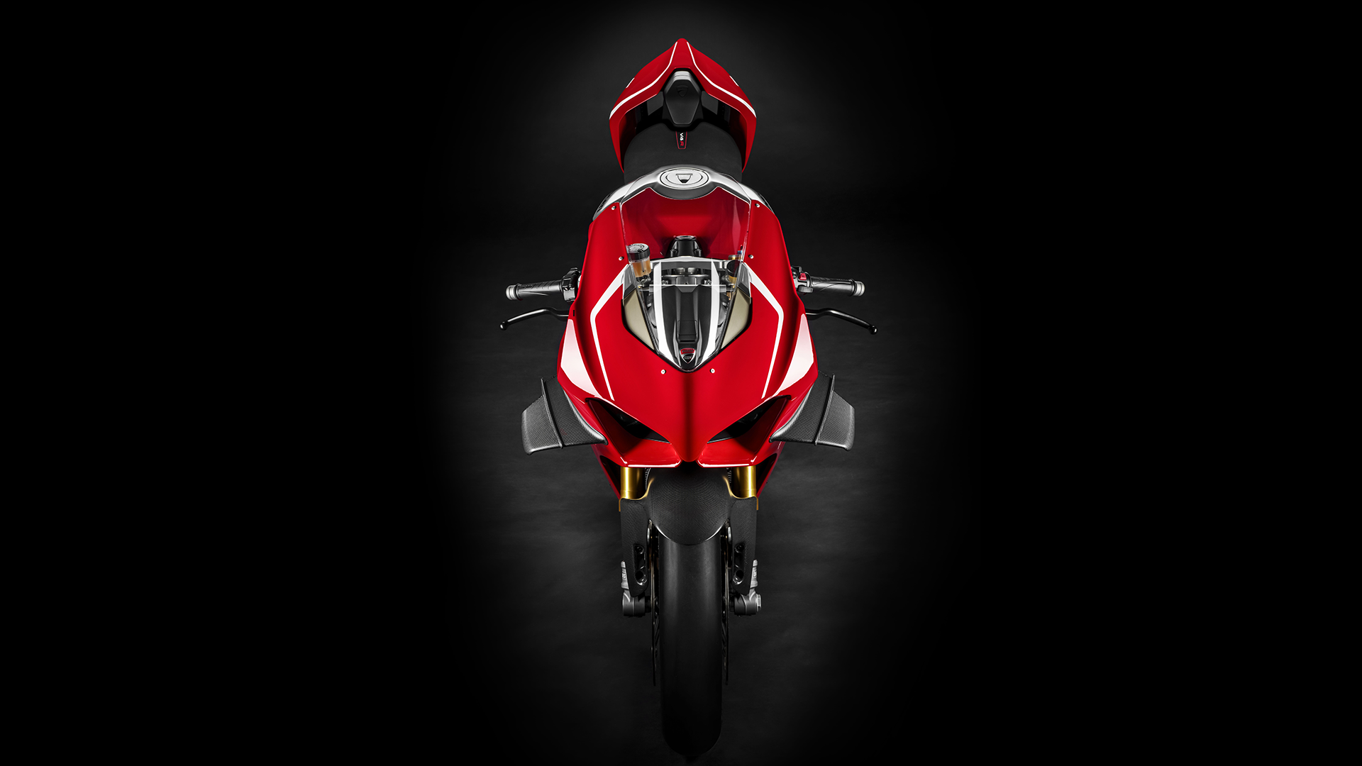 The aerodynamic package of the new Panigale V4 R includes: protective windscreen, headlight fairing, and side fairings to reduce aerodynamic resistance, air extractors to reduce operating temperatures in heavy-duty racing use, and the GP16-derived carbon fiber aerodynamic appendices that increase stability in all riding phases, reduce the intervention of electronic controls and increase rider confidence, who tends to keep the throttle open for a longer time and brake late into the curve.