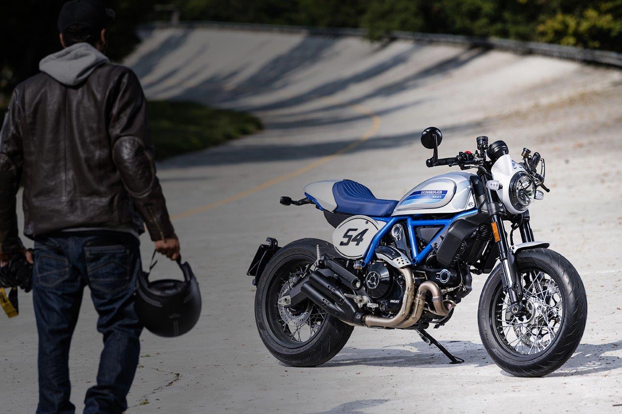 For 2020 the Ducati Scrambler Café Racer is available in a new color scheme. The new Silver Ice Matt scheme features a blue frame, with silver and white accents. Prices for the new Scrambler Café Racer start from $11,995.
