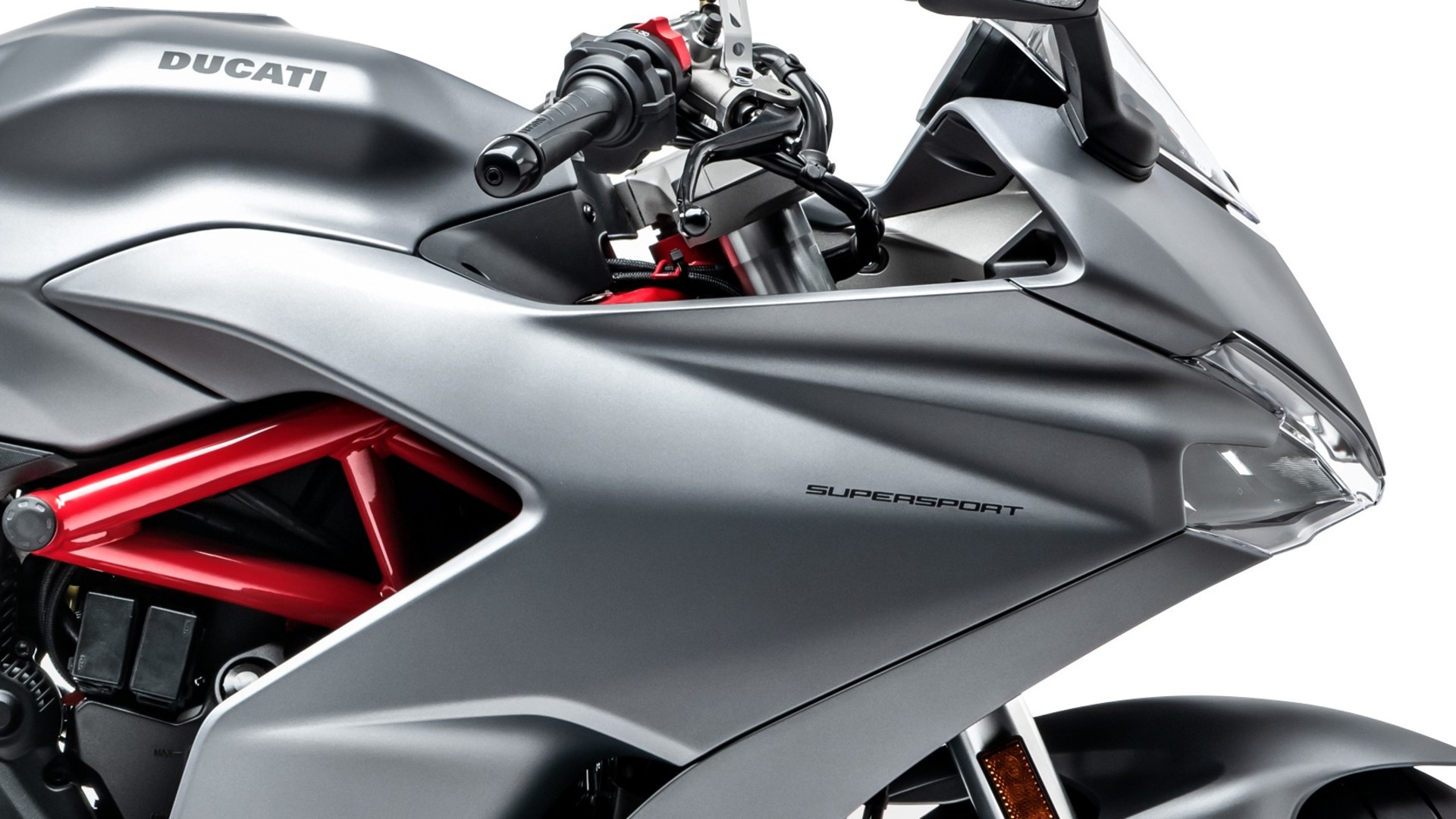 The lines of the SuperSport create dynamic shapes, visually compact and light. The design, sporty and elegant, integrates elements typical of Ducati sports bikes such as the single-sided swingarm, sculpted tank and compact lateral silencer with two overlapping exits, which leaves the rear wheel, with its “Y” spoke design, fully visible.
