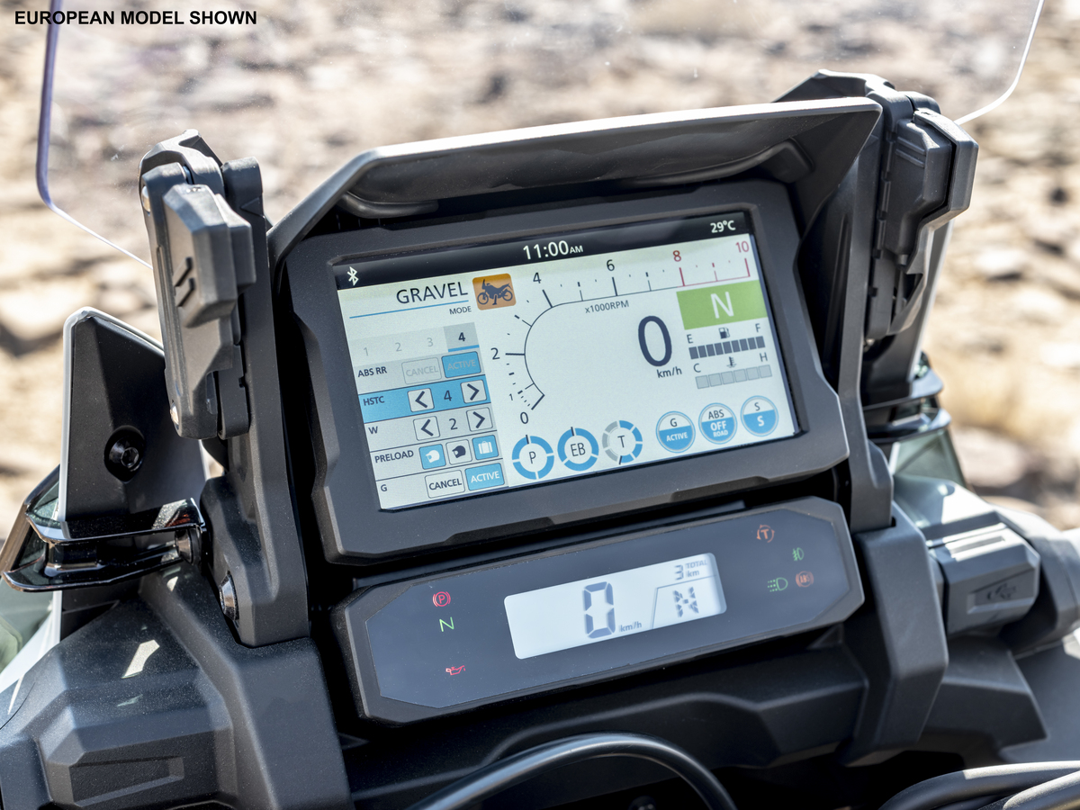 Both manual-transmission and DCT models offer six riding modes: Tour, Urban, Gravel, Off-Road, User 1 and User 2. The last two let you customize the system to your individual preference.