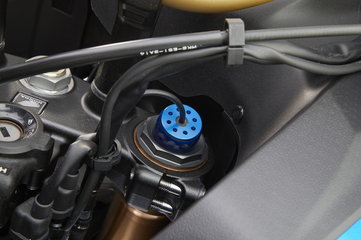 Front and rear wheel-speed sensors working with the Honda Selectable Torque Control (HSTC) let you dial in three levels of wheelie control. There’s also an “off” position—you’re the wheelie control here.