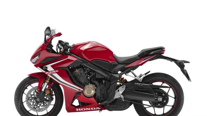Fitted with ABS for 2020, the CBR650R is available in Honda’s Grand Prix Red.