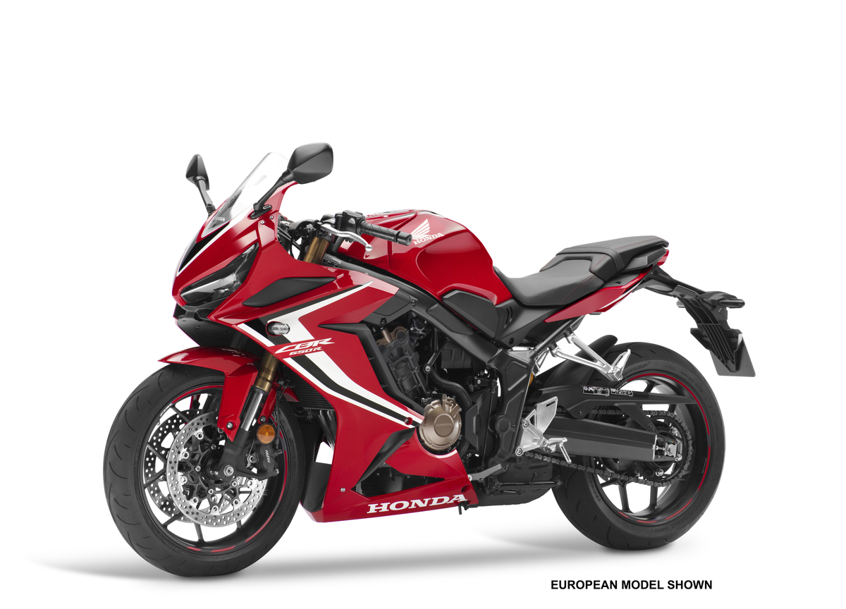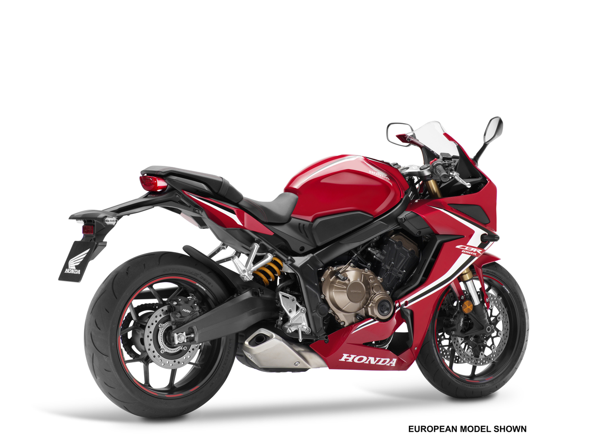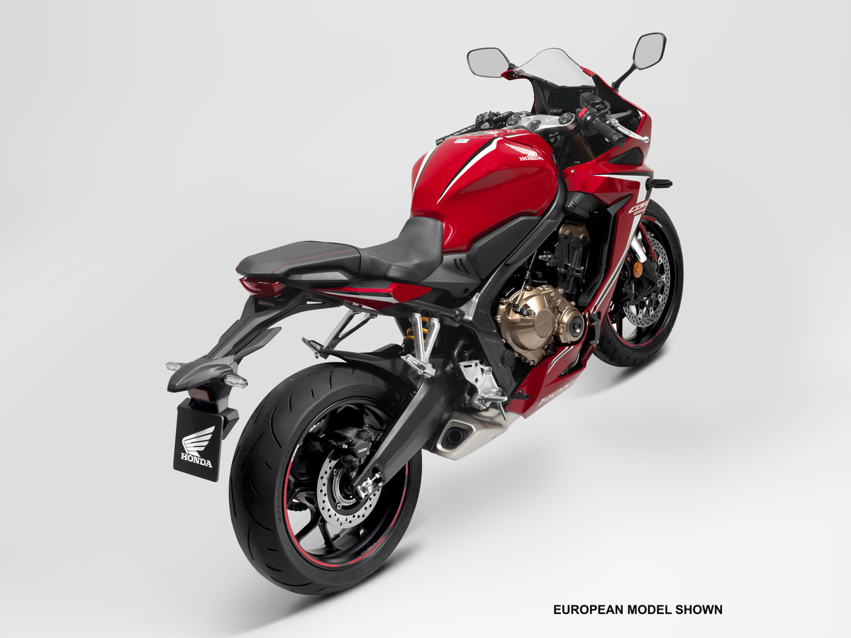 Fitted with ABS for 2020, the CBR650R is available in Honda’s Grand Prix Red.
