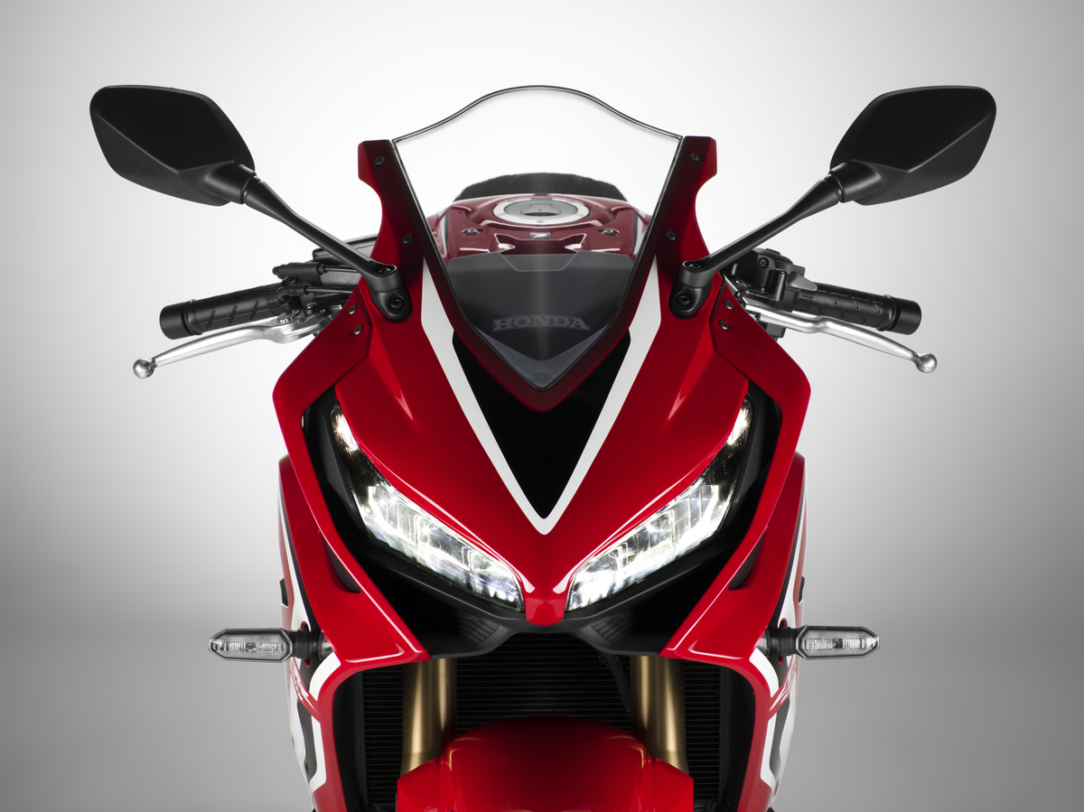 The CBR650R features a twin-duct intake design, engineered to ram cool, dense air into the airbox, increasing horsepower.