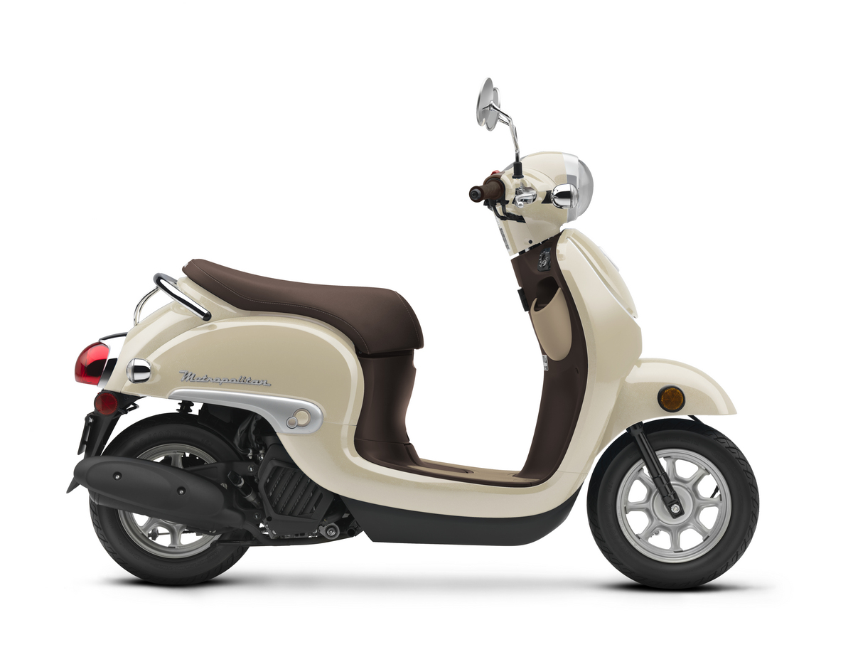 The Metropolitan features a liquid-cooled 49cc four-stroke engine with fuel injection. It’s quiet, economical, and super reliable—everything you’d expect from a Honda.