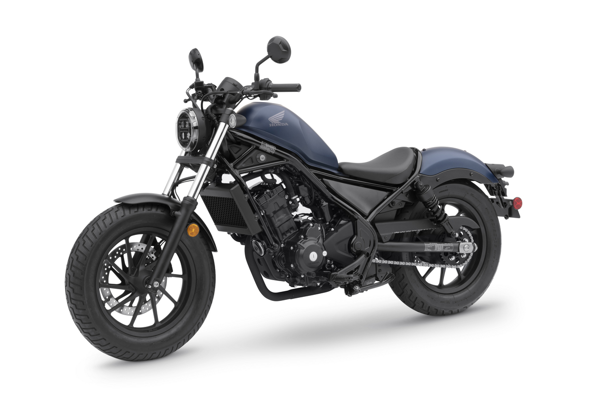 Other cool upgrades include a redesigned front fork with stiffer springs and a new oil level to improve handling, and a revised rear shock with similarly stiffer spring rates. Thanks to the new suspension and superior clutch control, the Rebel 300 is more user-friendly than ever.