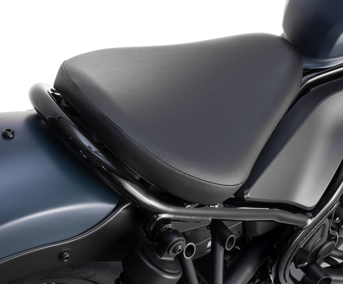 Super-narrow, especially at the critical tank/seat junction, the Rebel makes it easier to get on and off the bike, and to put your feet down at stops. Plus, the Rebel fits a wide variety of riders.