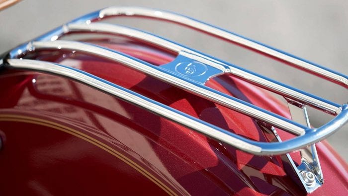 Inspired by the original 1920 Scout, with a headlight, handlebars, wheels and fleet-sided fenders that nod to its rich heritage.