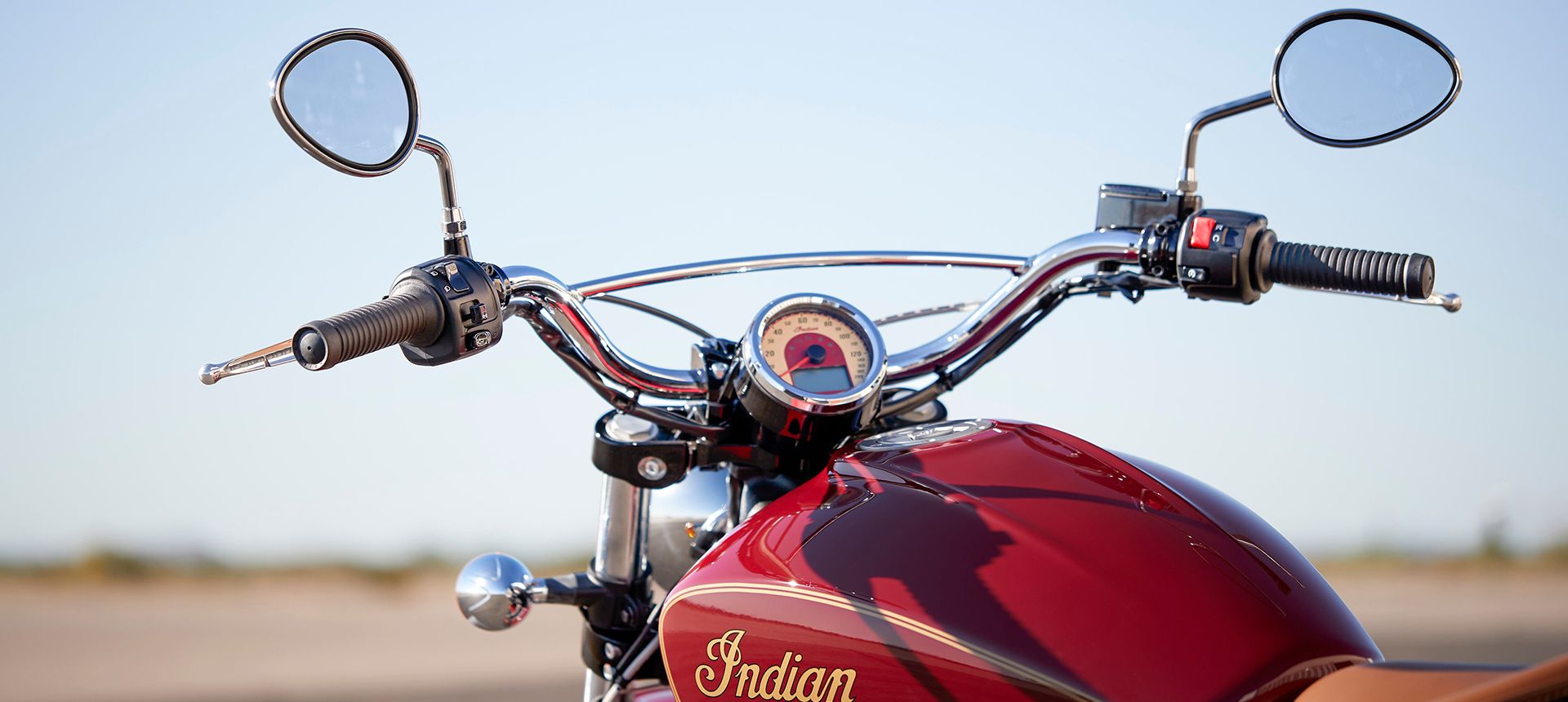 Inspired by the original 1920 Scout, with a headlight, handlebars, wheels and fleet-sided fenders that nod to its rich heritage.