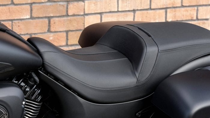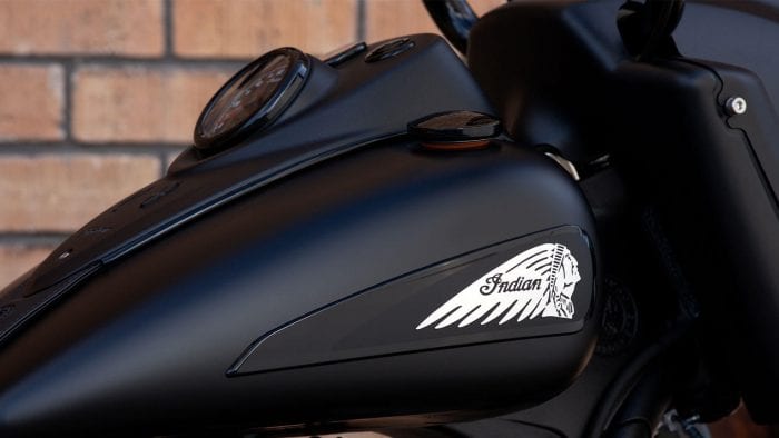 Inspired by the look of custom bikes, an open front fender exposes the 19″ 10-spoke contrast-cut front wheel, with the iconic Indian Motorcycle headdress leading the way.