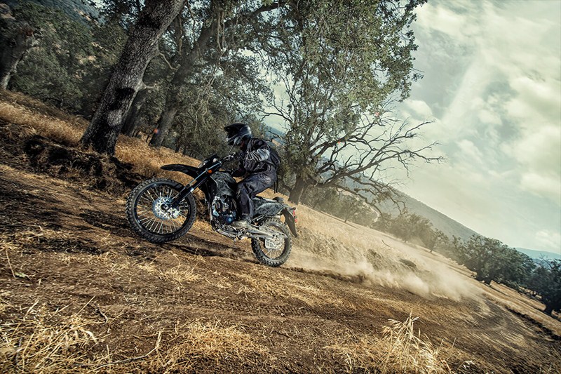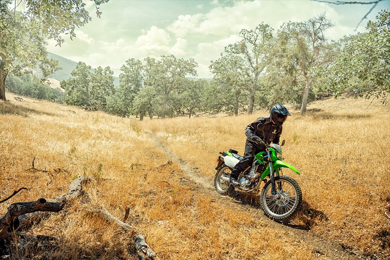 The 2020 Kawasaki KLX250 is the latest in a long line of dual sport motorcycles, with the first generation being released in 1979. Powered by a 249 cc liquid cooled DOHC single producing 24 crank HP and 15 lbs-ft of crank torque, the KLX250 is only 304 lbs wet weight, leading to a fun, tossable, agile dual sport.