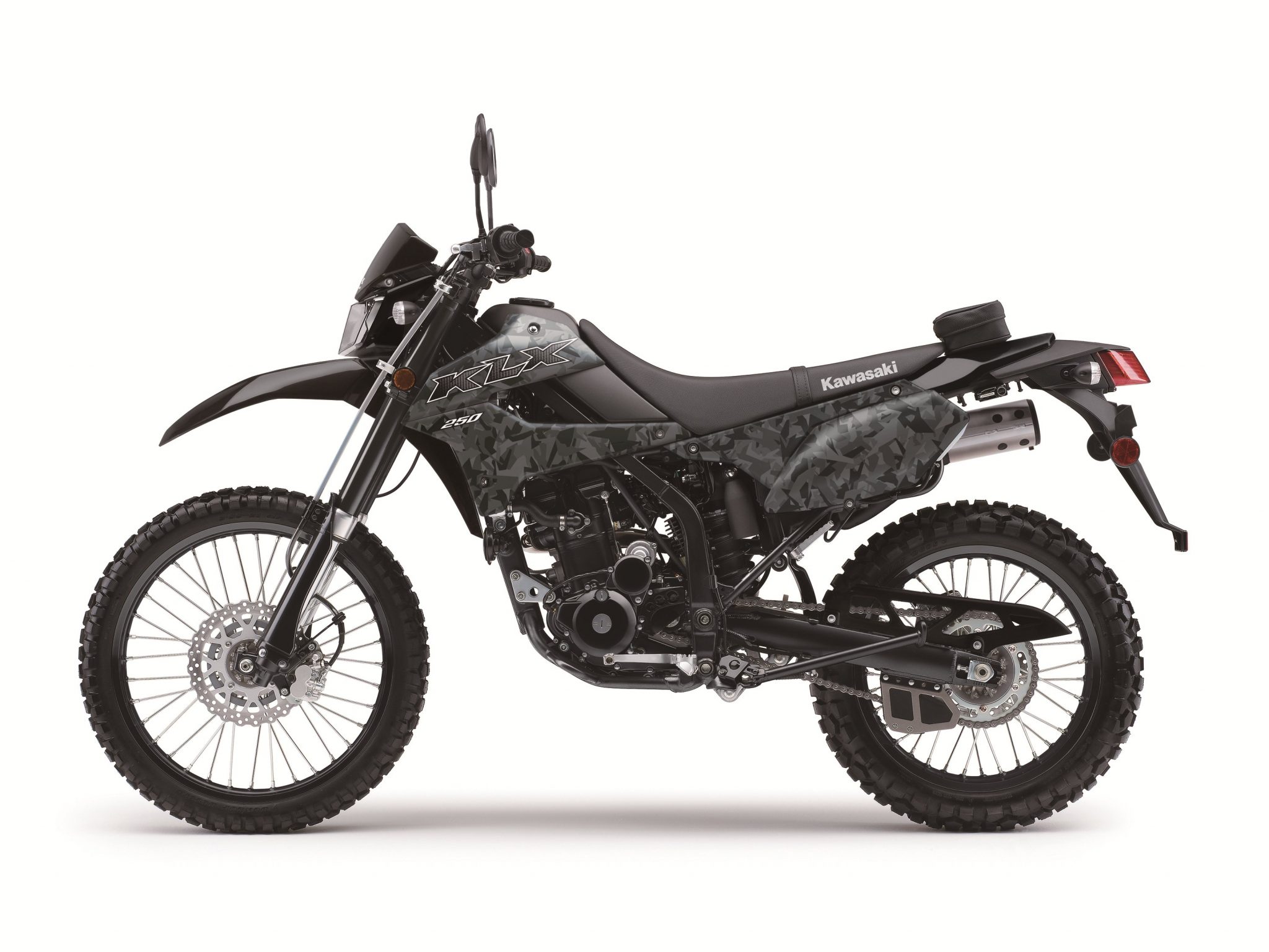 To meet modern emission regulations, the KLX250 has a digitally controlled fuel injection system. As well, there is a variant model of the KLX250 known as the Camo Edition, which replaces the standard green Kawasaki Racing paint scheme with a grey mottled camo.