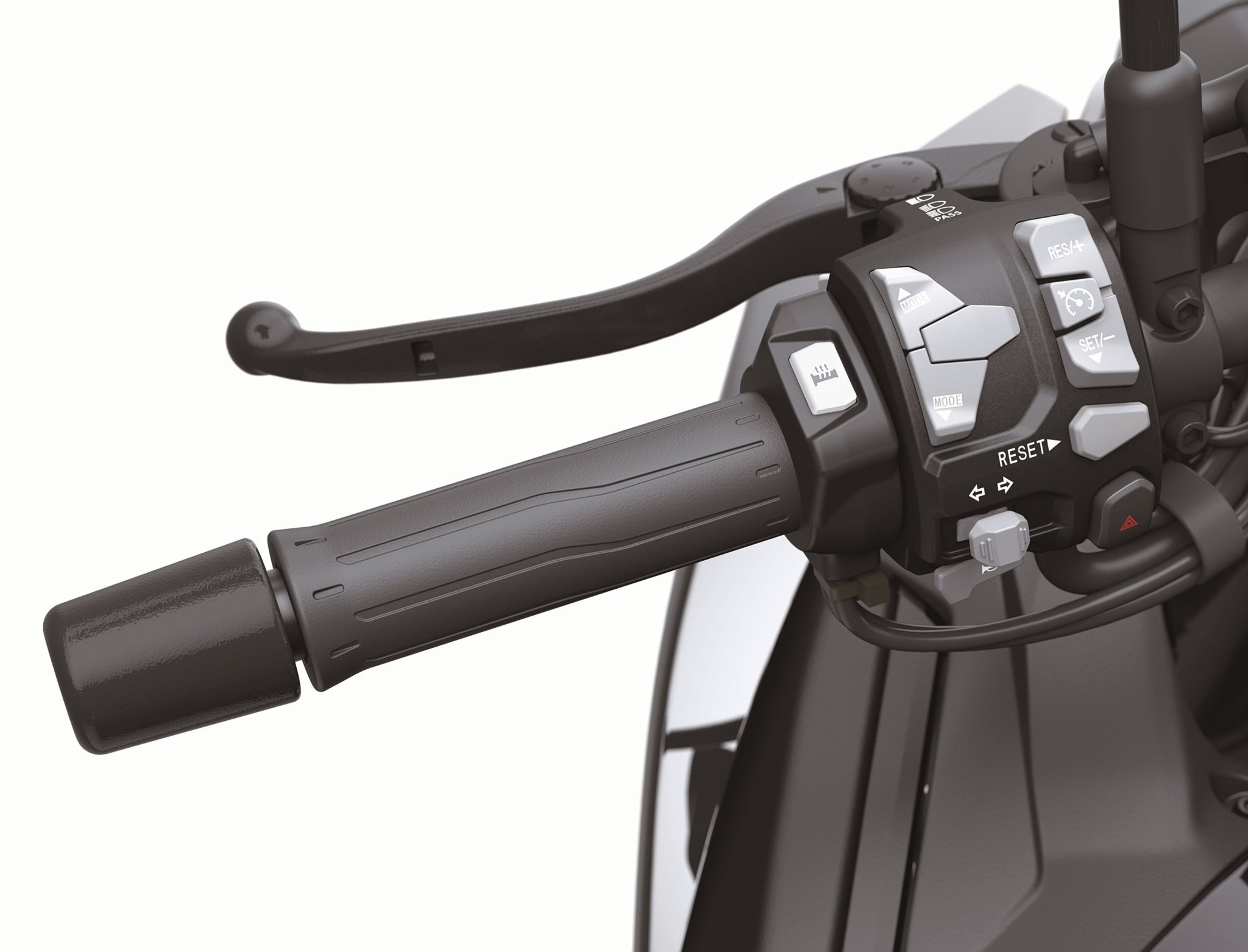 Integrated riding modes link Kawasaki TRaction Control (KTRC) and Power Modes to offer varying traction control and power delivery settings to suit different riding conditions. Sport mode enables sporty riding for winding roads. Road mode offers comfortable riding over a wide range of conditions. Rain mode delivers reassurance over wet surfaces. Rider (manual) mode lets you set each system independently.