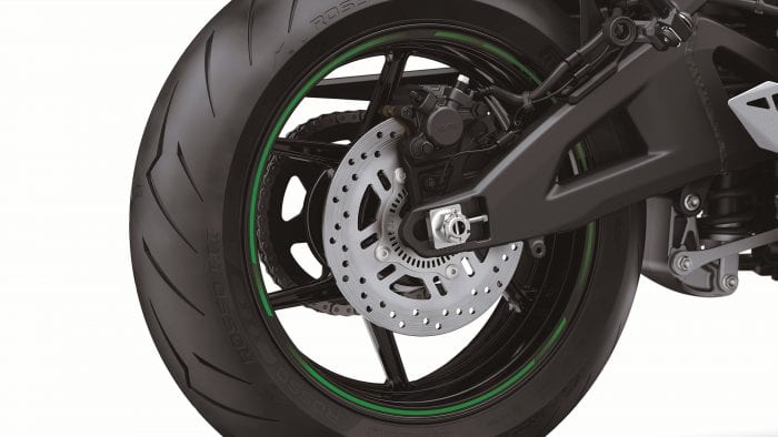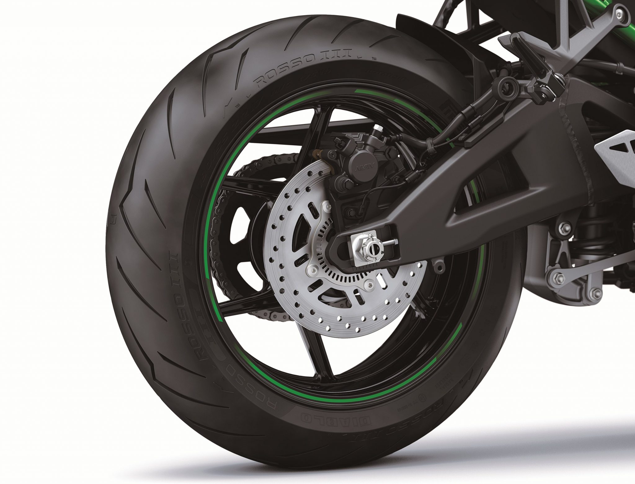 Kawasaki TRaction Control (KTRC) offers multiple levels of aid to reduce rear-wheel slip while Kawasaki Launch Control Mode (KLCM) helps optimize acceleration. Kawasaki Intelligent Braking System (KIBS) provides precision braking performance. Kawasaki Corner Management Function (KCMF) combines the performance of KTRC, KLCM and KIBS to KTRC, KLCM and KIBS to provide dynamic performance assistance throughout the corner.