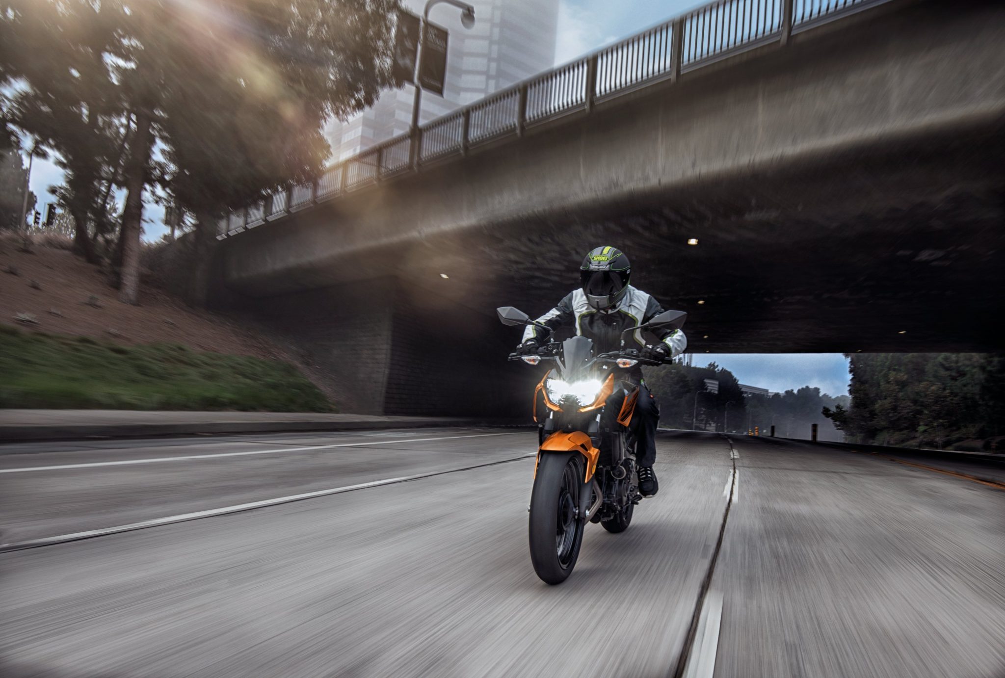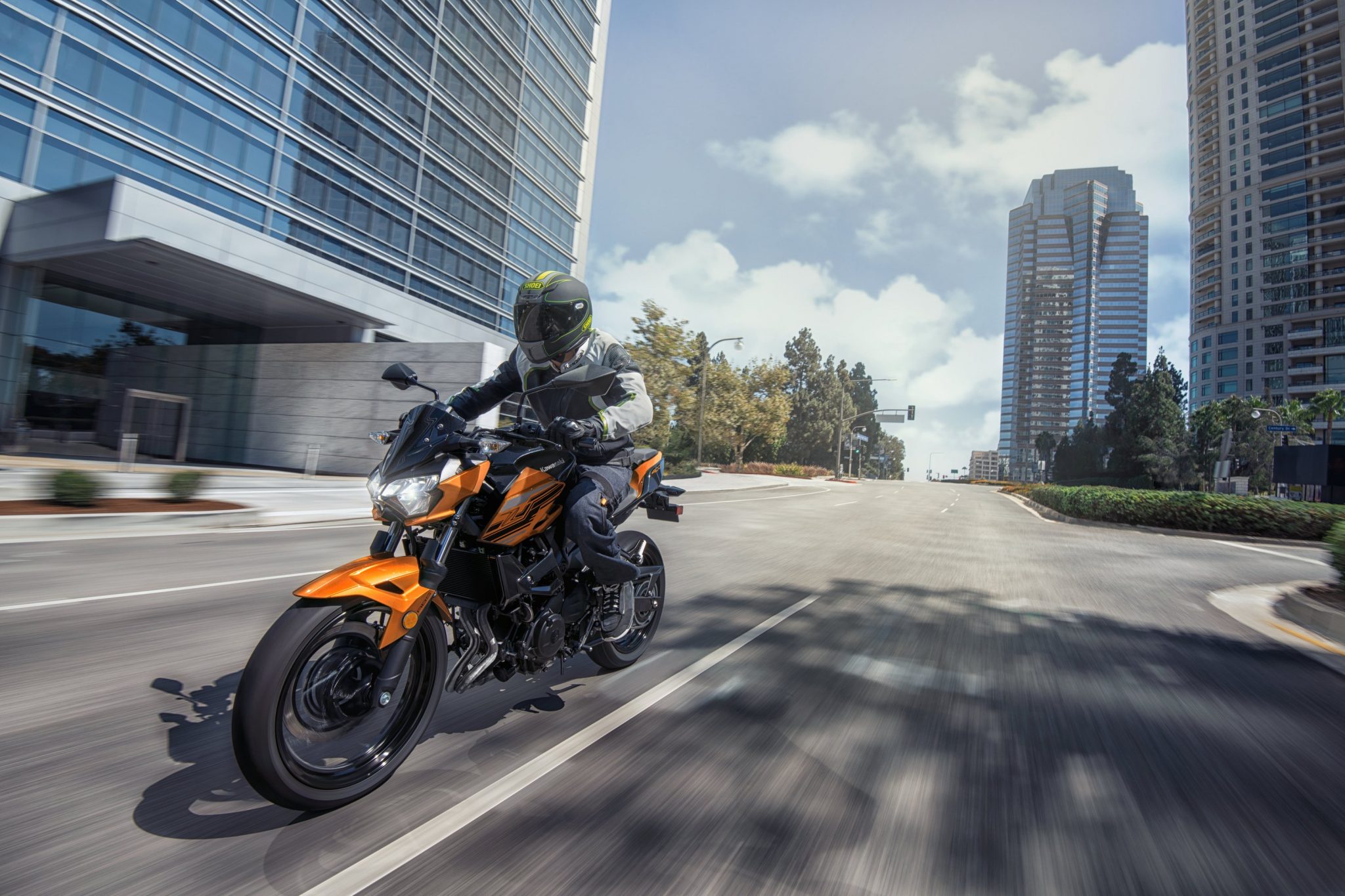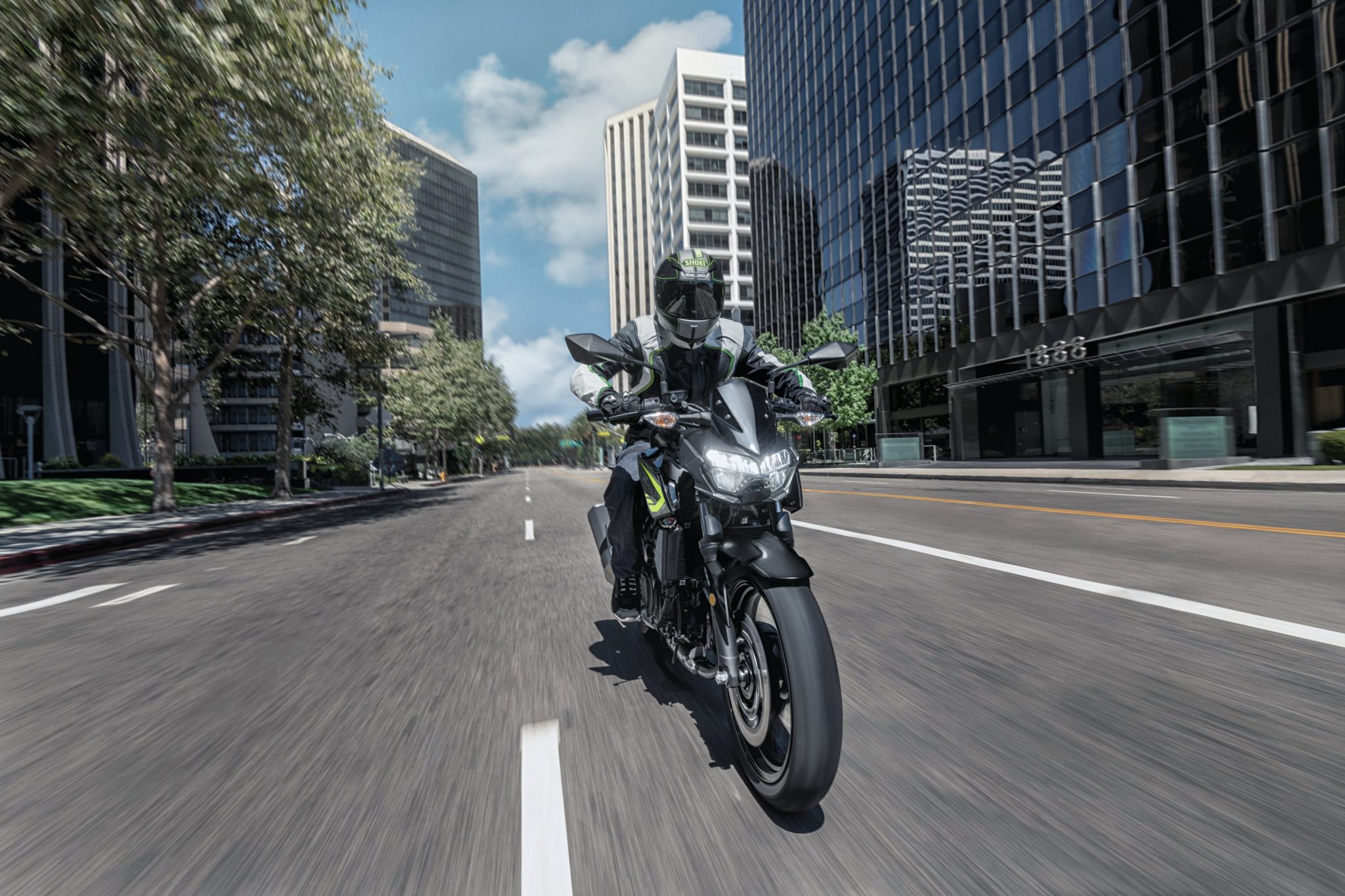 Displacing 399 cm3, the new engine delivers significantly increased performance compared to its predecessor: 33.4 kW (+4.4 kW vs the 2018 Z300). The higher performance can largely be credited to the new downdraft intake, which is accompanied by a larger airbox offering increased intake efficiency. The increased performance is complemented by a rider-friendly character; the smooth response and abundant low-end torque facilitate throttle control for new and experienced riders alike.