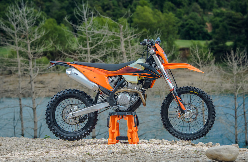 Ever since it rolled onto the scene in 2012, the KTM 350 EXC-F has revolutionized what dual-sport motorcycle can be. Offering big power in a small and nimble frame, the 350 EXC-F is a heavy duty dirt bike wrapped in a compact package, with no compromises made at all. The 349cc single-cylinder engine produces north of 34 horsepower, giving it plenty of grunt for navigating the streets, but delivered exactly where and when you need it on the trails.