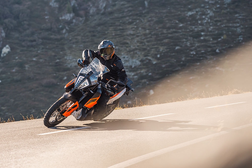 KTM’s new generation LC8c in-line twin-engine with 95 hp (70 kW), combined with modern electronics and a 6-speed sequential gearbox, ticks all the boxes for a travel-enduro motorcycle that can be ridden up to 450 kms between fuel stops on the open road. Smooth long-distance travel is assured thanks to two balancer shafts, which keep vibration to a minimum. With long service intervals of 15,000 km, you can ride for days on end without a worry.