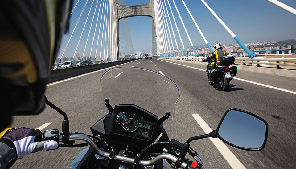 The TI-ISC on the V-Strom 650XT has Suzuki’s Low RPM Assist feature that seamlessly adjusts engine speed during takeoff and low-speed riding to smooth the power delivery. It also helps reduce the possibility of the rider stalling the motorcycle.