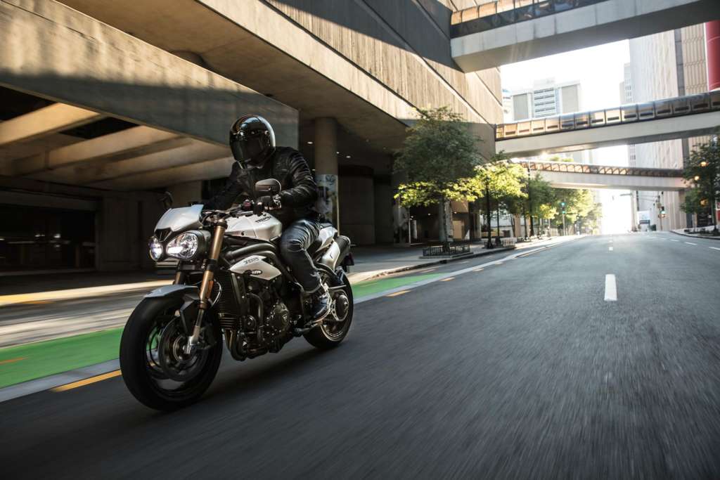 The differences between the models are mostly in the electronics and suspension. The Speed Triple S has four selectable rider modes and Showa shocks front and rear, while the Speed Triple RS has 5 modes including a new track mode, and Ohlins shocks front and rear. The RS also features an exhaust by Arrow that is 9 lbs lighter than the standard exhaust on the S.