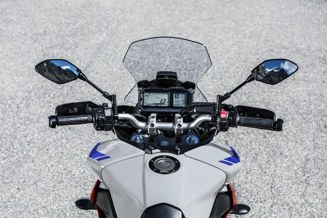 While both models use the same frame, engine, body design, and electronic control units, the 900GT includes hard side mount cases, cruise control, Yamaha QuickShift (lifted straight from the R and MT models), heated grips, and adds some partial suspension adjustability to both the front forks and the rear shock.