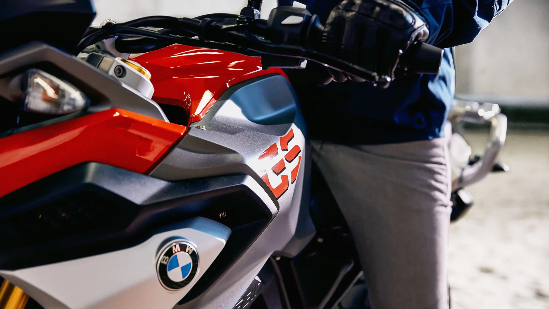 Both the handlebars and the footrests and operating elements are arranged on the G 310 GS in a balanced way, thus guaranteeing the typical GS seat position. This ensures a relaxed and easily raised seat position for riders large and small for a perfect overview and precise handling.