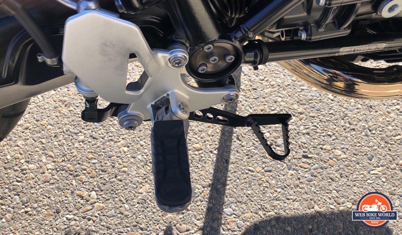 - The right-side foot brake is not just a piece of metal, but a big, grippy triangle, through a drilled lever, that pushes against a hydraulic shaft behind the heel plate in a very German artistic-but-functional manner.