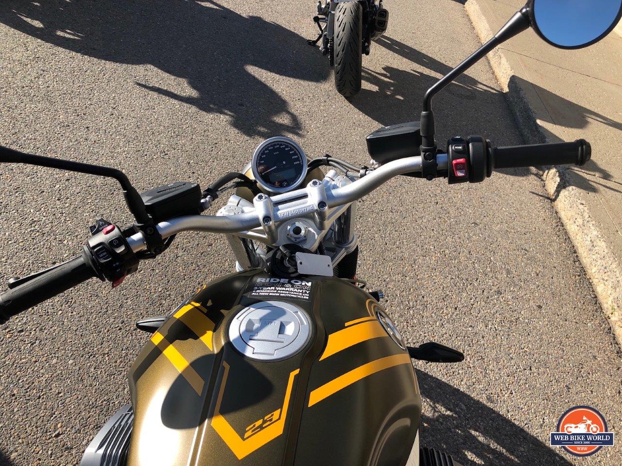 In the process of keeping myself on the bike and comfortably riding, I found that I had to squeeze my knees a little harder than I do on my own bike. Any rider knows it’s your thighs and knees that give you 90% of the control of your bike, the handlebars are just there for occasional countersteering and a place to have your hands operate the controls. With the R NineT Scrambler, that firmness of the seat I talked about much earlier came back to bite.