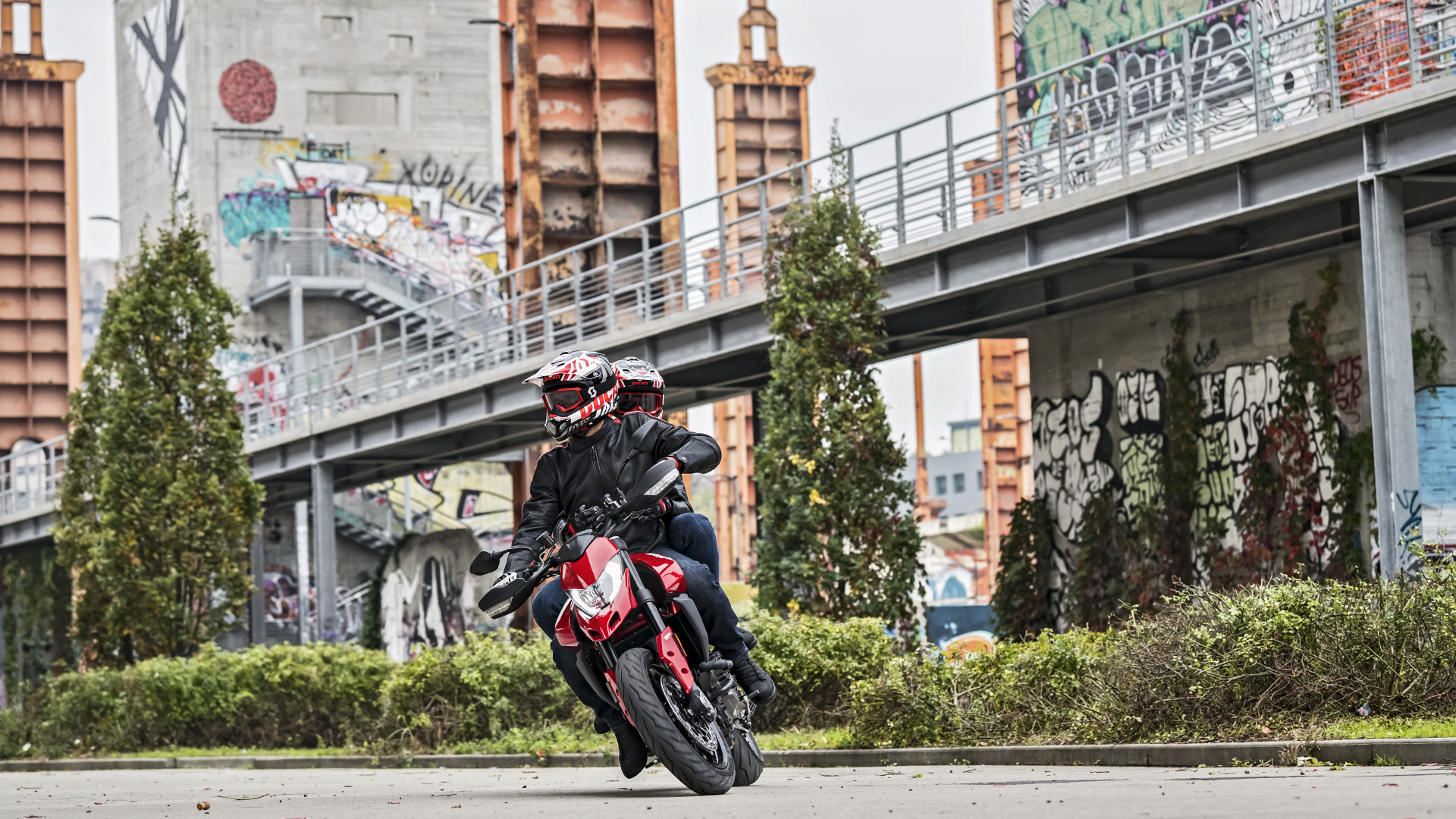 The Hypermotard 950 family is equipped with a revised version of the 937 cc twin-cylinder Ducati Testastretta 11°. The twin-cylinder engine has been radically revised and lightened (-1.5 kg). It outputs 4 more horsepower than its predecessor (114 hp at 9,000 rpm) and a flat torque curve peaking at 9.8 kgm at 7,250 rpm. All the Hypermotard versions are available with the 35Kw engine specifications suitable for learners. Thanks to Ducati’s constant attention to quality, the 937 cc Testastretta 11° engine allows optimal maintenance management: valve adjustment is scheduled every 30,000 km.