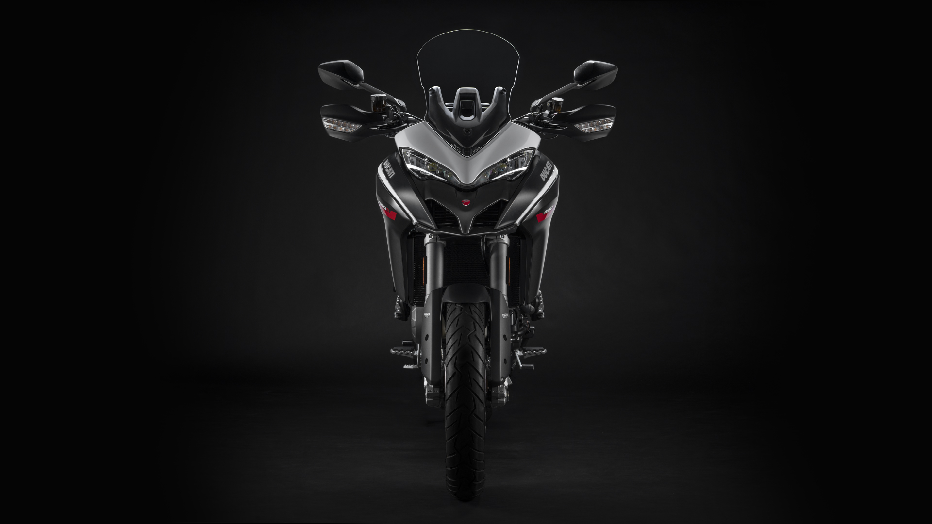 The design of the Multistrada 950 range harmoniously combines the stylistic elements of the Multistrada family and interprets them to achieve a sleek, compact line. The 19″ front wheel, the unique front headlight with two horizontal elements and the 20-litre tank give it a unique character. The lines of the Multistrada 950 convey a sense of lightness thanks to the exclusively designed light alloy or spoke rims, available for the S version.