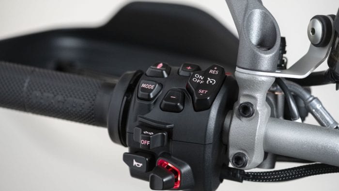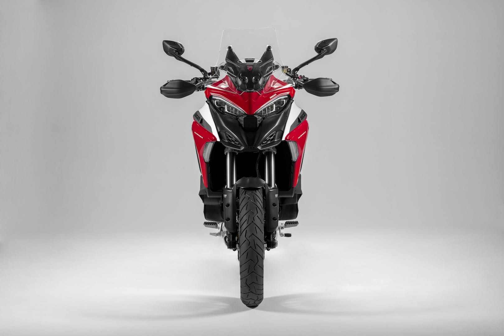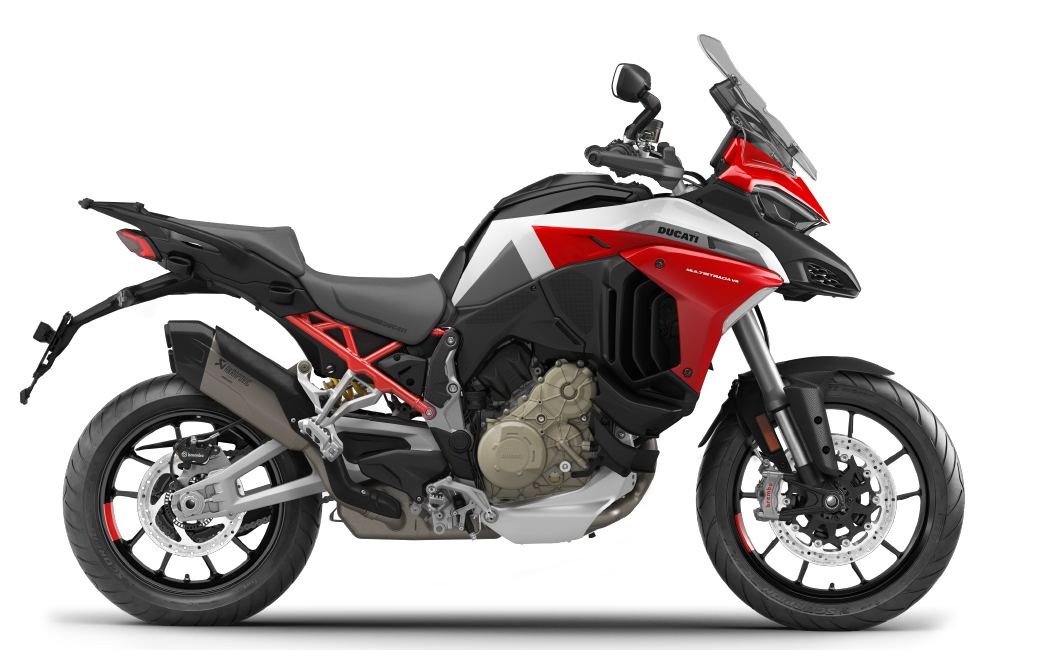 For 2021, the Multistrada V4 S Sport is available with a special sports livery that uses Ducati Red, with white and black accents. Unlike the S model, it’s only available with alloy rims.