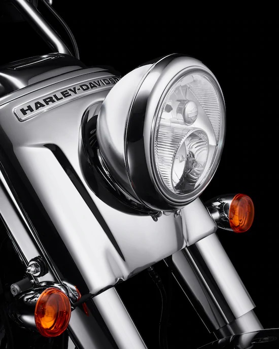A classic style chrome headlight nacelle is tucked tight against the frame and forks for a tighter, smaller look. It also accommodates a clean-looking windshield mounting system.