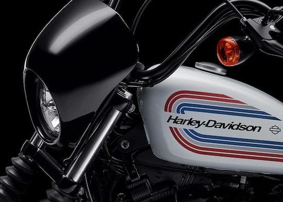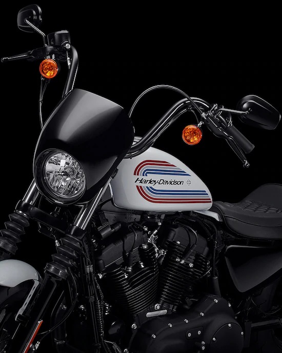 Harley Davidson has reached back to the ’70s for the throwback paint schemes, which pair well with the small bits of brightwork on the engine and the 9 spoke machined rims.
