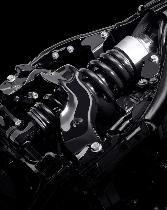 The Low Rider S frame rake is reduced to 28 degrees from the 30 degree rake of the standard Low Rider® model, resulting in more responsive handling.
