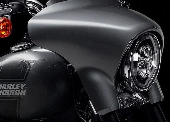 Driving you down the road is 92.5 HP and 110 ft-lb of American-made torque from the super-smooth Milwaukee-Eight® 107 V-Twin engine. Harley Davidson fitted the stunning “Mantis” cast-aluminum wheels, and just the right mix of blacked-out and bright parts. Looking like a mini Batwing, the fairing is a removable piece that like the saddlebags is paint matched.