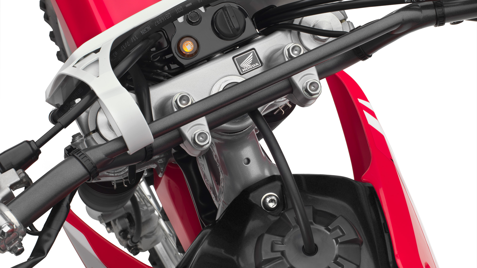 Fuel injection means the CRF250F starts right up, even in cold weather. Compared to a carbureted bike, it also helps reduce emissions and enhance performance and fuel efficiency. And say goodbye to clogged pilot jets when you put this bike away for storage.