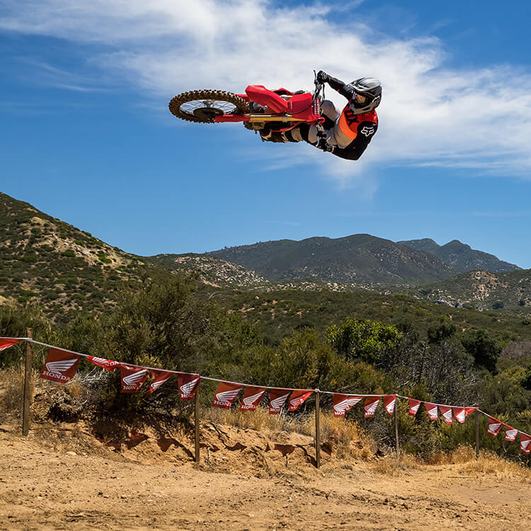 Kickstarting? Maybe if you’re riding in the vintage class, but not here. By ditching the kickstarter entirely, our engineers can make the CRF450R lighter. Electric starters and lithium-ion batteries are so light now and so good that putting them on a bike like this is a win/win combination. And winning is what a CRF450R is all about.