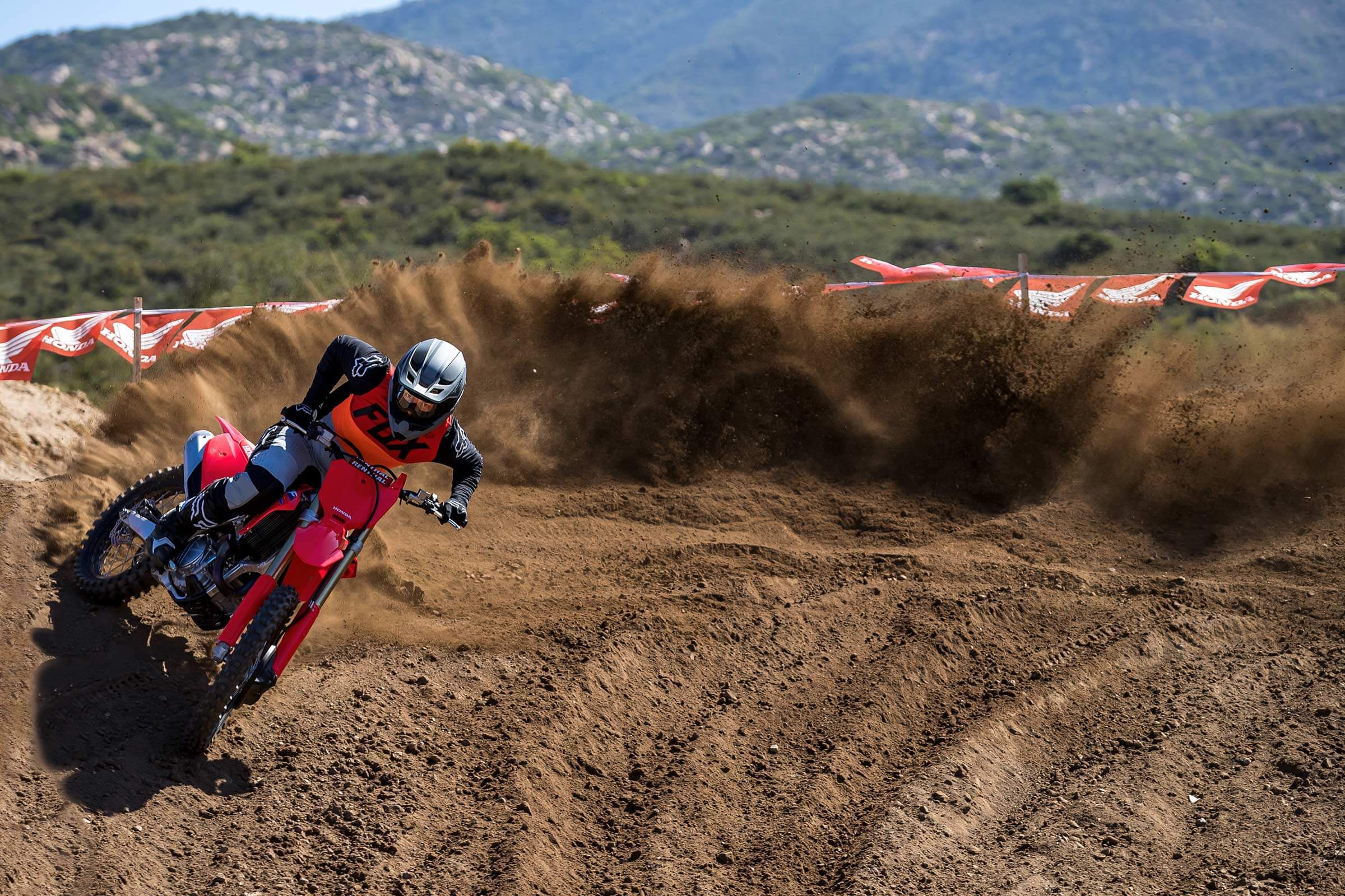 The CRF450R features a downdraft intake tract and FI body to help increase both power and fuel-metering precision. It’s part of the reason the CRF450R offers such explosive power and massive torque, especially out of the starting gate and in the critical first 100 feet of the race to the first turn.